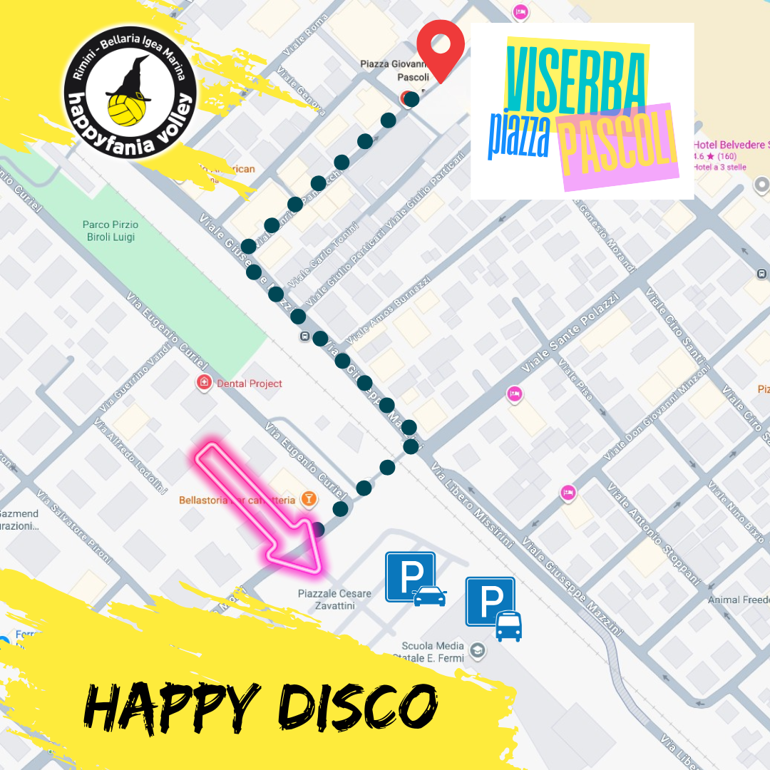 Parcheggi consigliat: Piazzale Cesare Zavattini, in prossimità delle palestre di Viserba (automobili e pullman)